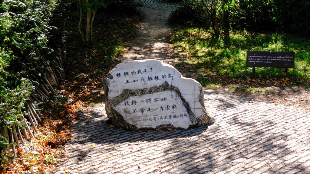 Just past the bridge stands a memorial stone dedicated to Xu Zhimo, a former King’s College student and one of the most influential poets of modern China. Xu is celebrated for introducing Western Romantic poetry to Chinese literature and for writing in a more personal, expressive style that broke with traditional forms. His time at Cambridge deeply influenced his work, and he often wrote about the city as a place of freedom, beauty, and inspiration.